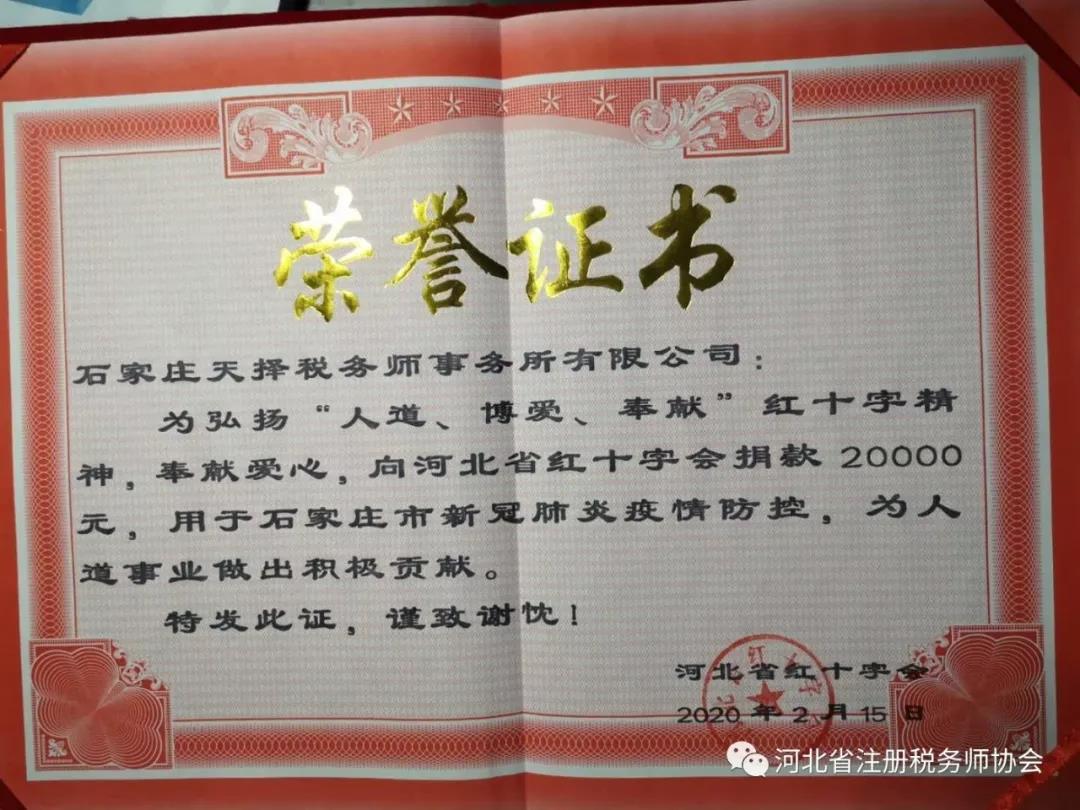 2、所長(zhǎng)張勤在2月中旬看到疫情還在蔓延,看到那些遭受病毒折磨的同胞,那些堅(jiān)守在一線(xiàn)的‘戰(zhàn)士’。深感作為稅務(wù)師,就應(yīng)全力奉獻(xiàn)自己的力量,跟全國(guó)人民一起打贏這場(chǎng)戰(zhàn)役。隨后石家莊天擇稅務(wù)師事務(wù)所再捐款兩萬(wàn)元用于新型冠狀病毒肺炎的疫情防控。