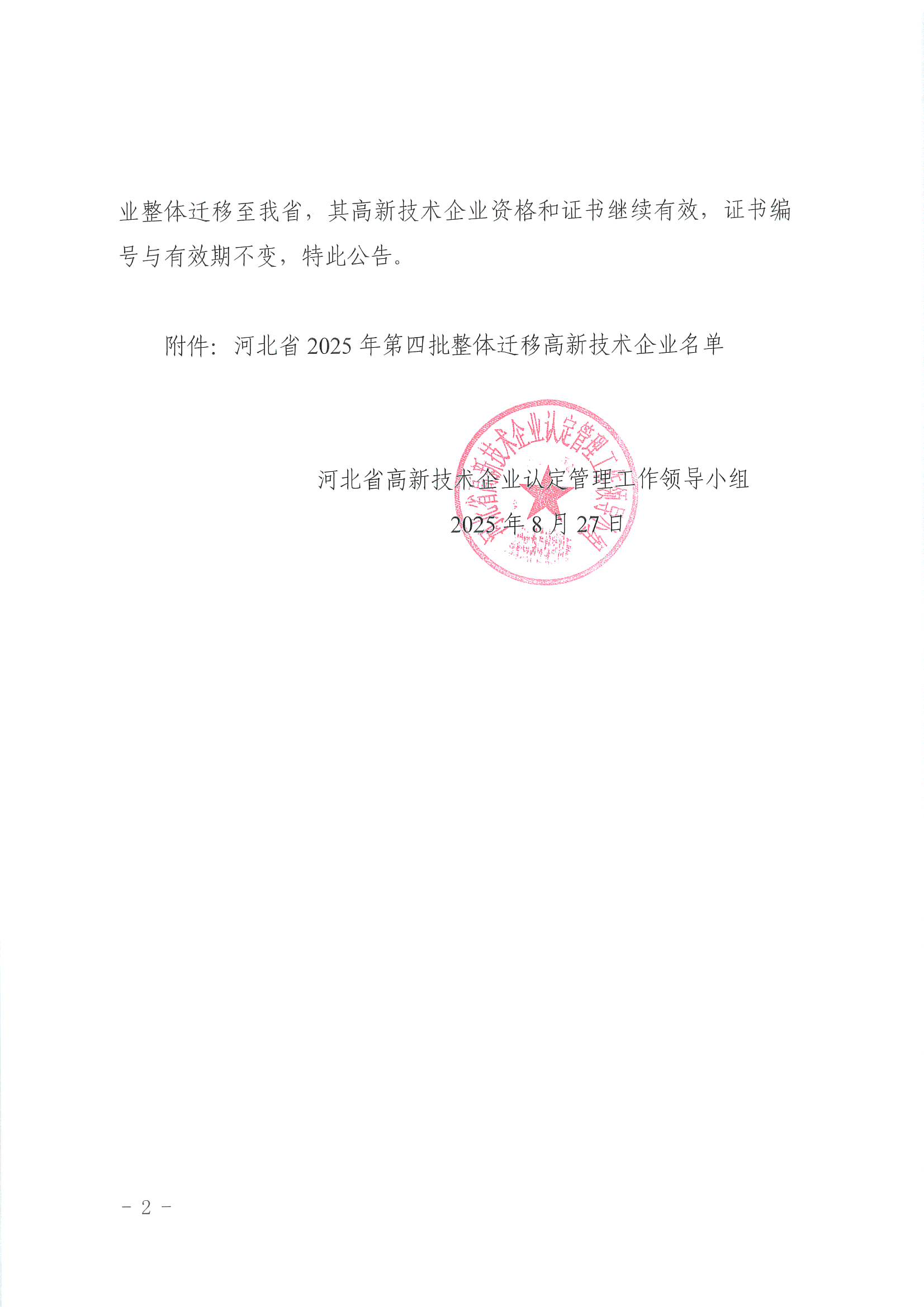 關(guān)于2025年第四批整體遷移高新技術(shù)企業(yè)資格繼續(xù)有效的公告